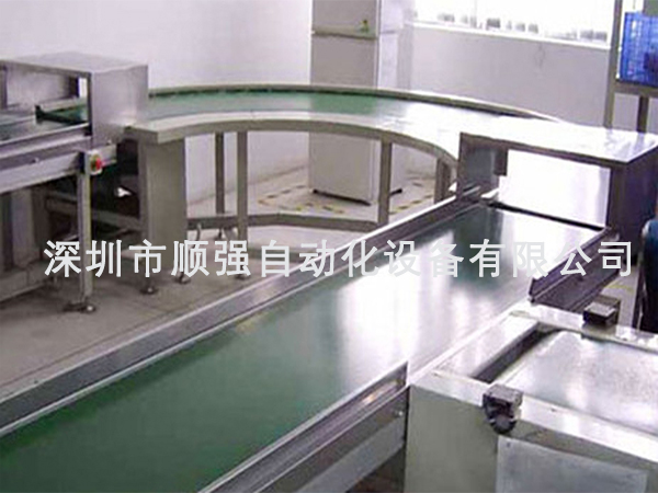 皮带转弯机是流水线的一种用皮带输送线来节省人工和提高工作效率。
